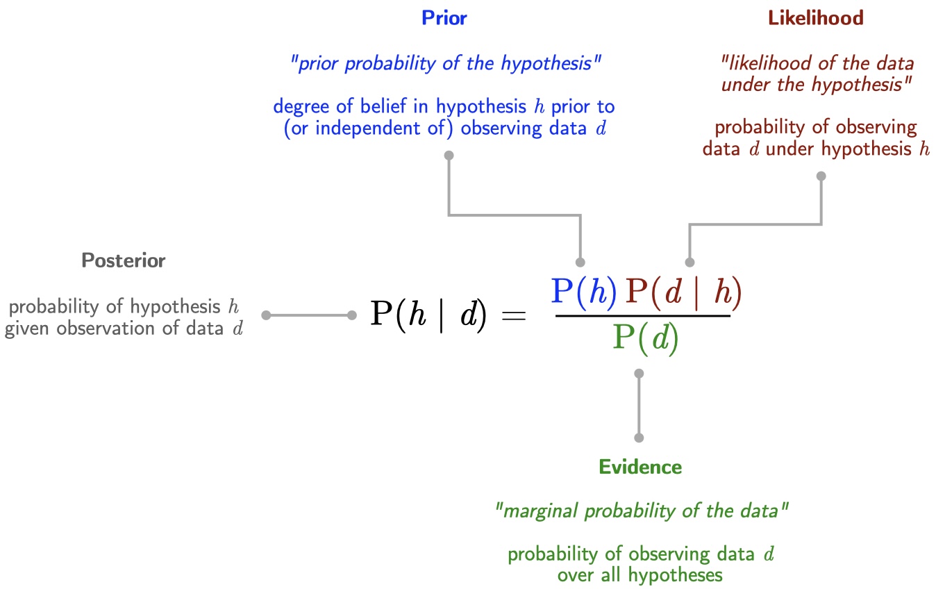 P(h \mid d) = \frac{P(h) \, P(d \mid h)}{P(d)}