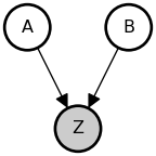 The conceptually important part is what happens when the model is conditioned on Z, so while I am conditioning the model on B, I’m not shading the B node in the DAG.