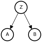 • Once stratified by Z, no association: {A \perp B \mid Z}
