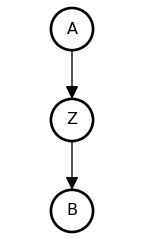 and {P(B \mid Z) = P(B \mid A, \, Z)}.